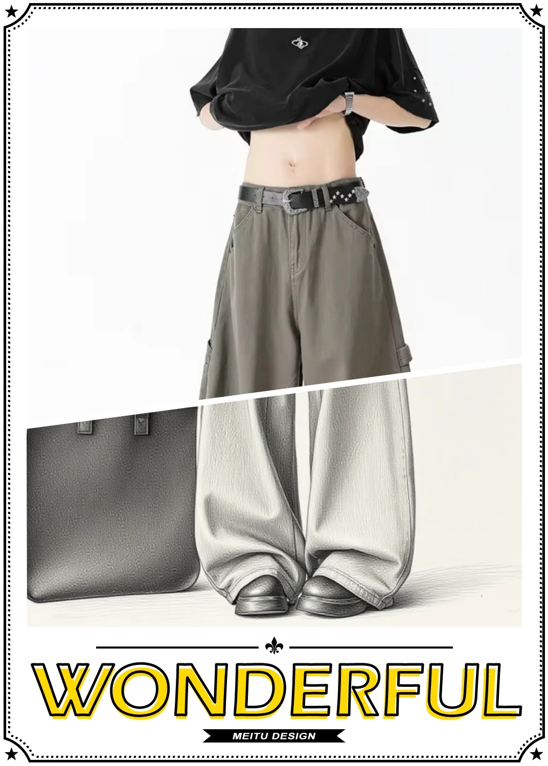 Jean cargo beige Y2k pour femme, jean baggy, jean vintage, vê...