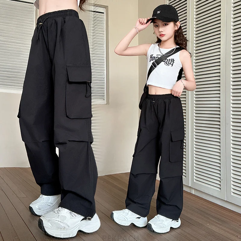 Pantalon Cargo noir décontracté pour enfants, avec poche, Streetwear Y2K, pantalon Car...