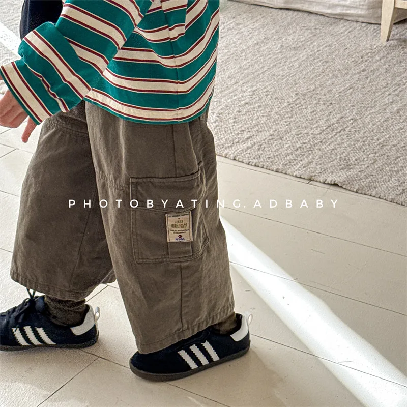 Pantalon Cargo en coton pour enfants, décontracté, couleur unie, polyvalent, ample, ja...