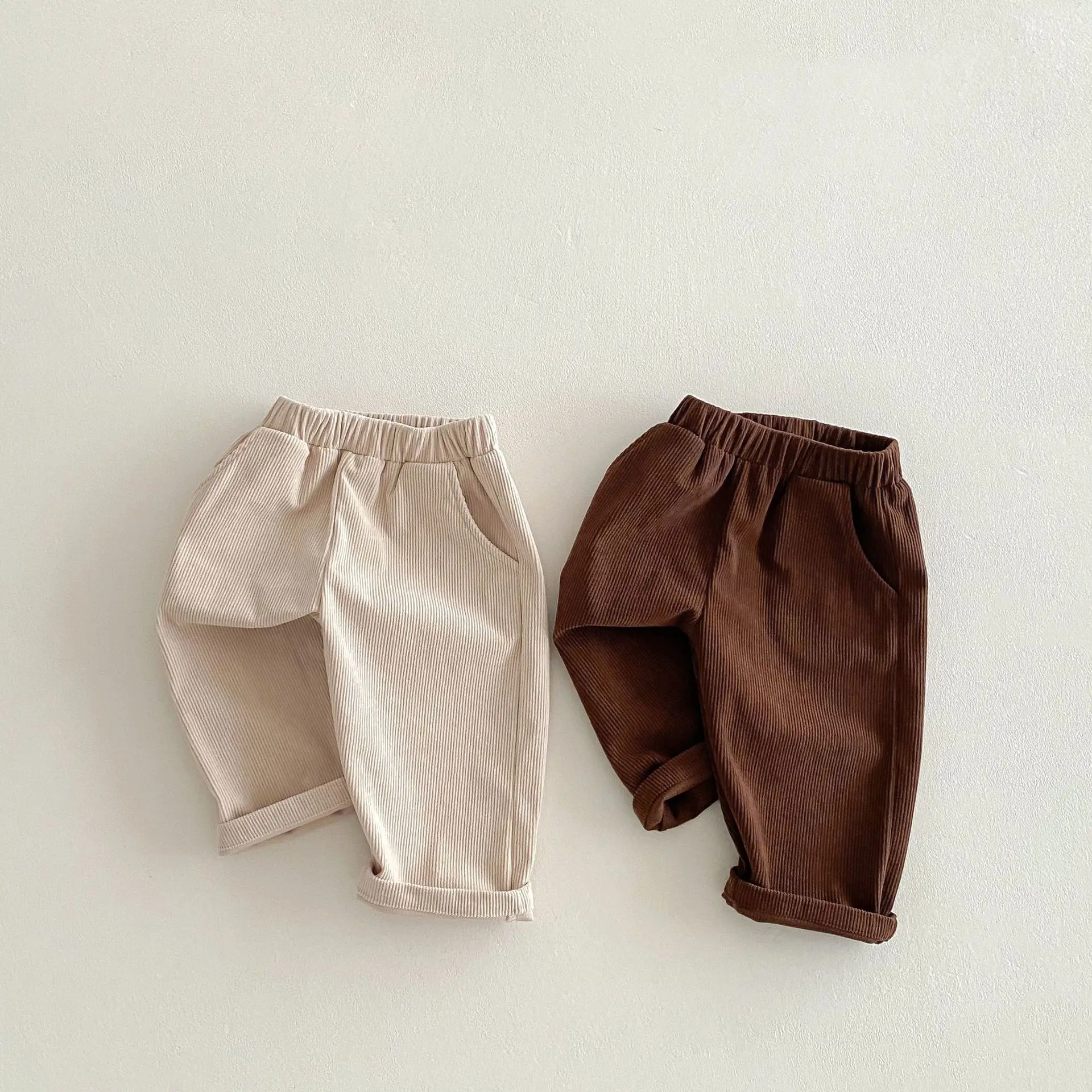 Pantalons en velours côtelé pour enfants de 1 à 6 ans, doux, couleur unie, coupe...