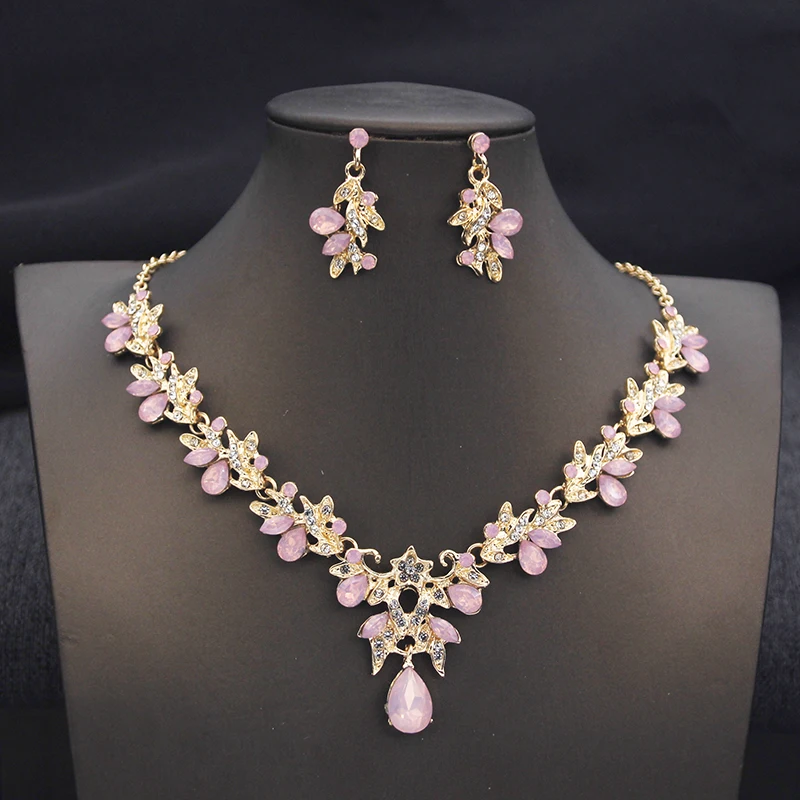 Ensembles de bijoux de collier papillon pour femmes, collier opale rose, tour de cou, boucles d'orei...