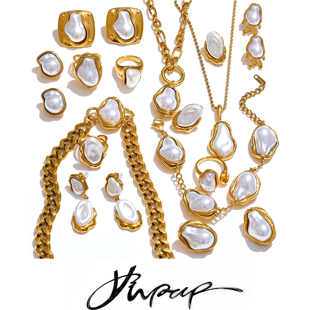 Yhpup gros mode acier inoxydable plaqué or perles baroques ensemble de bijoux étanche ...