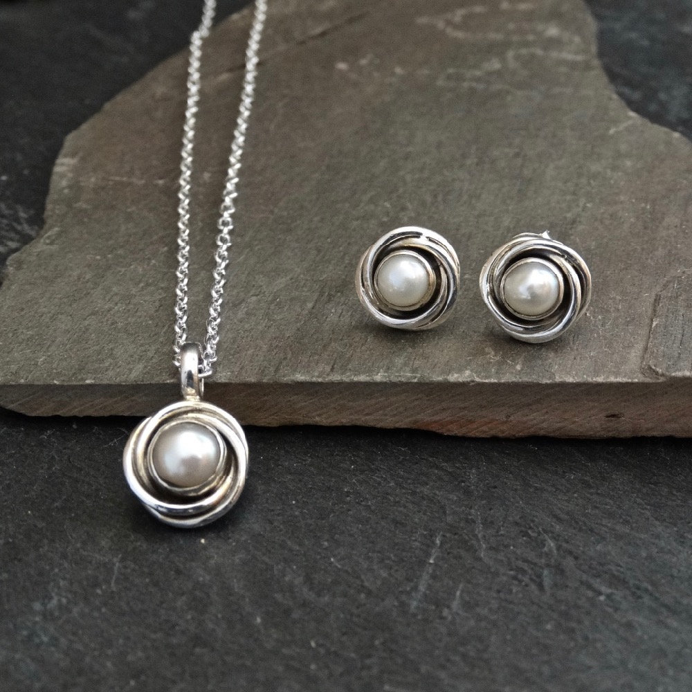 Parure de bijoux nid d'inspiration Art déco en argent sterling et perles d'eau douce blanches...