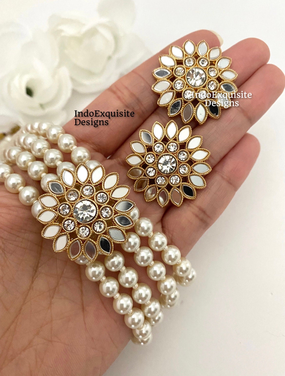 L'ensemble élégant de tour de cou miroir de style Bollywood est livré avec des ...
