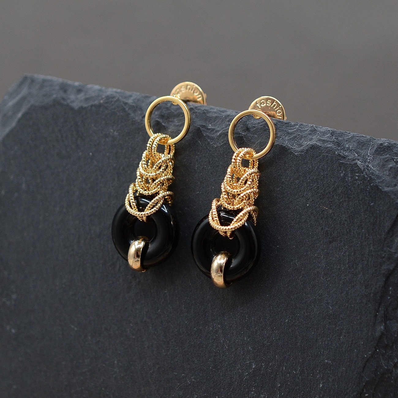 Boucles d'oreilles en onyx, boucles d'oreilles pendantes donuts en ...