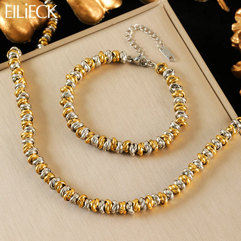 EILIECK 316L acier inoxydable couleur or perle boule collier Bracelets ensemble pour les femmes nouv...