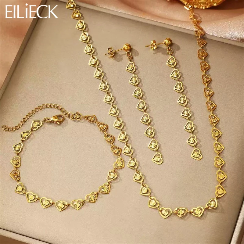 EILIECK 316L acier inoxydable créatif coeur collier Bracelet boucles d'oreilles ensemble mode...