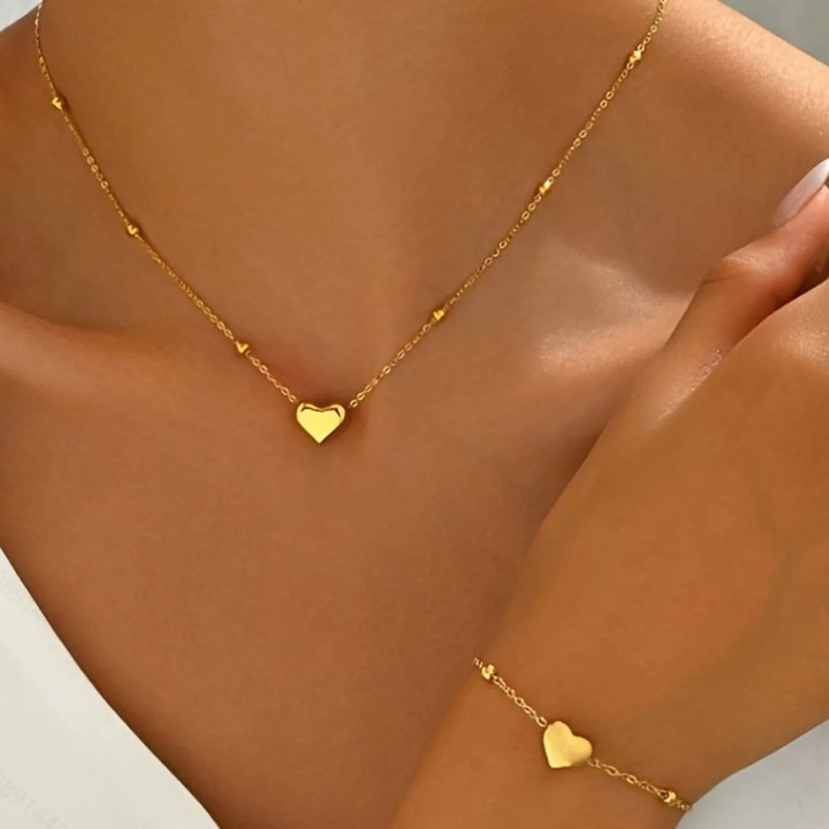 Ensemble de collier et Bracelet en forme de cœur pour femmes, en acier inoxydable, couleur or,...
