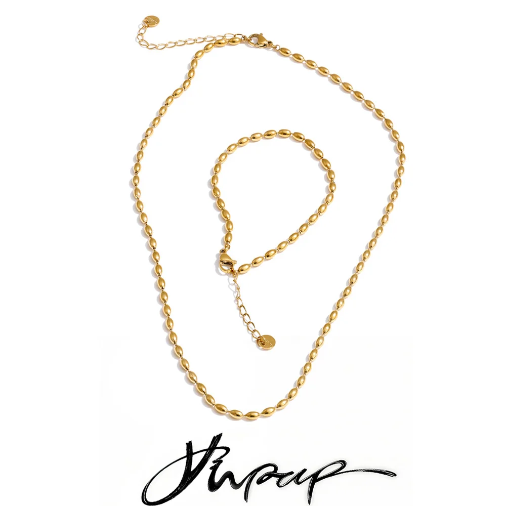 Yhpup populaire en acier inoxydable perles chaîne collier de base Bracelet Bracelet ensemble 1...