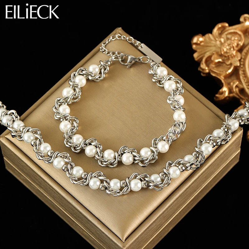 EILIECK 316L acier inoxydable perle chaîne collier Bracelet ensemble pour les femmes mode &eac...