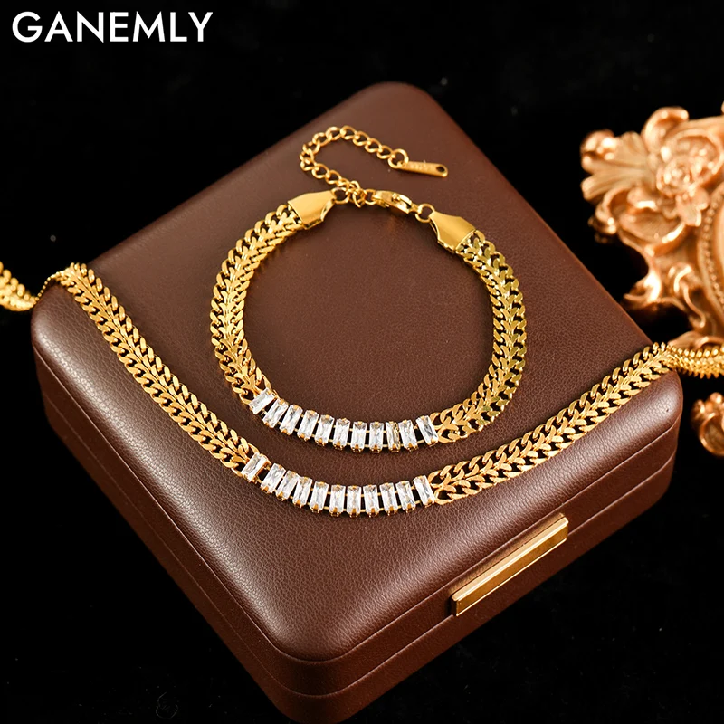 GANEMLY SION L-Ensemble de bijoux en acier inoxydable, collier étanche, bracelets, mét...