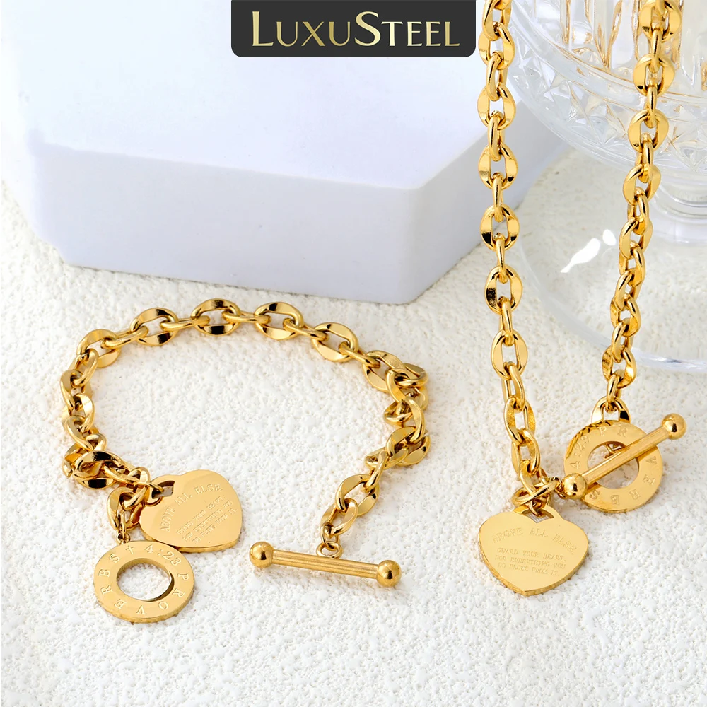 LUXUSTEEL doré en forme de coeur pendentifs collier Bracelet ensembles pour femmes en acier i...