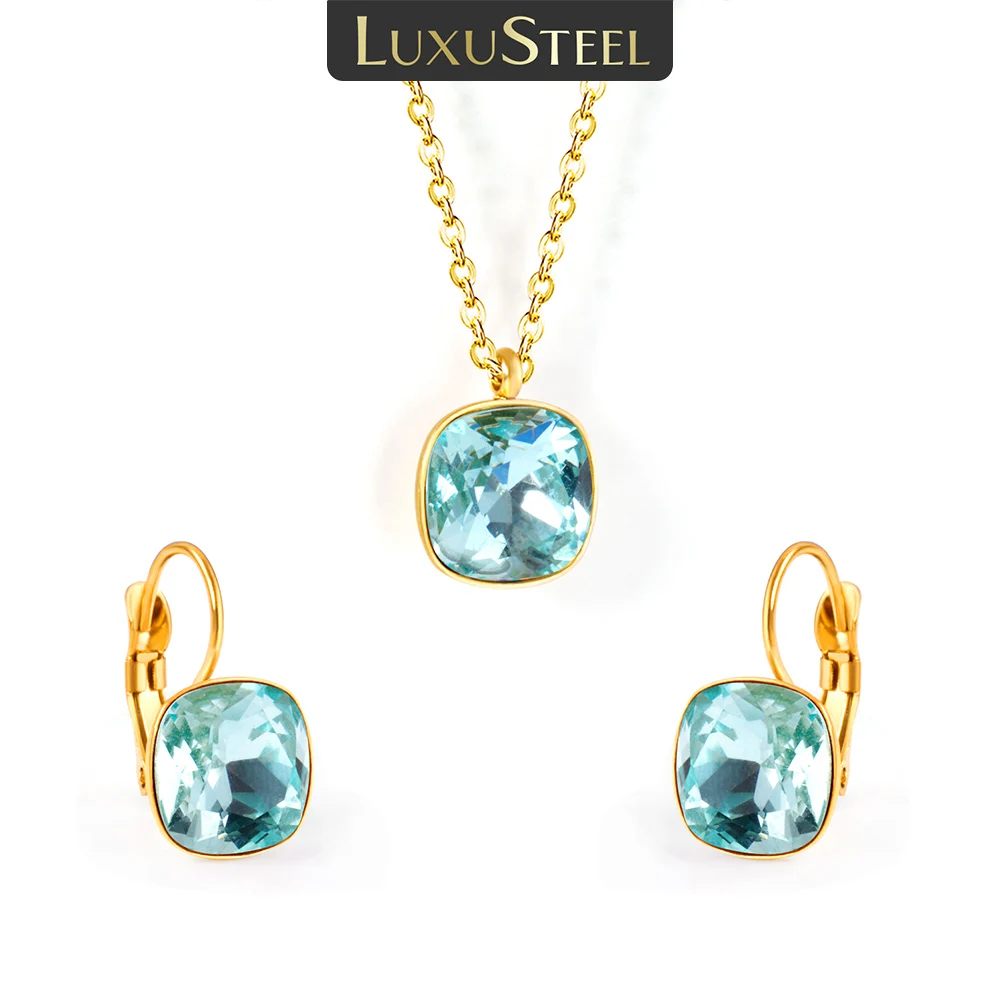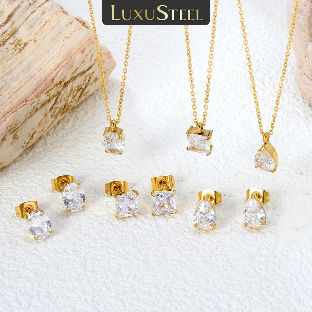 LUXUSTEEL goutte d'eau cubique zircone pendentifs collier boucles d'oreilles ensembles pour femmes f...