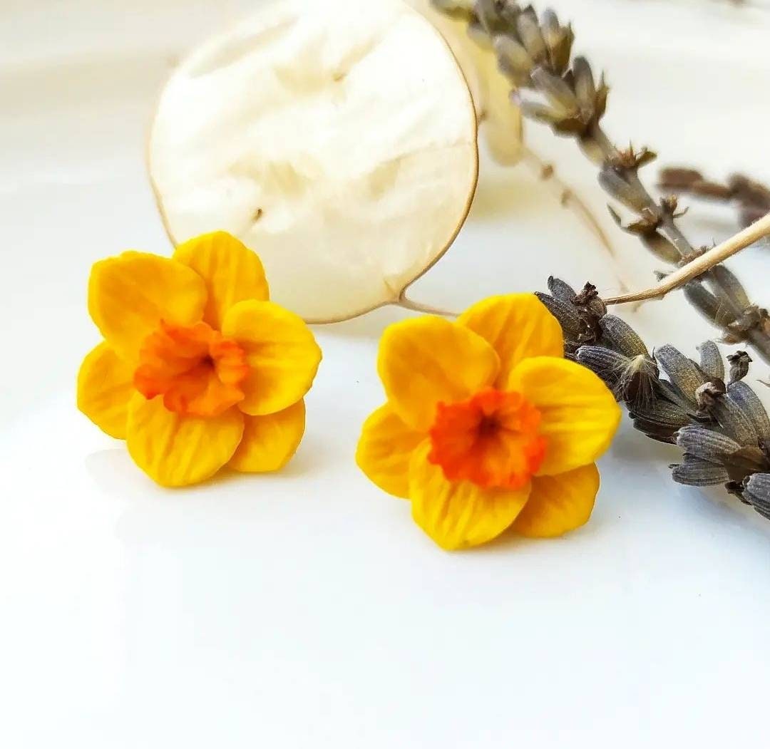 Boucles d'oreilles et clous jonquilles fabriqués par mes soins en argile polymère. Les...