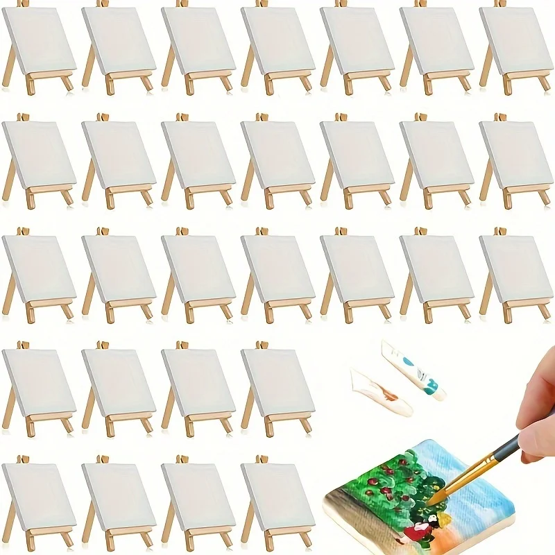 34 pièces Mini toile et chevalet ensemble avec Palettes de peinture acrylique pinceaux Mini t...