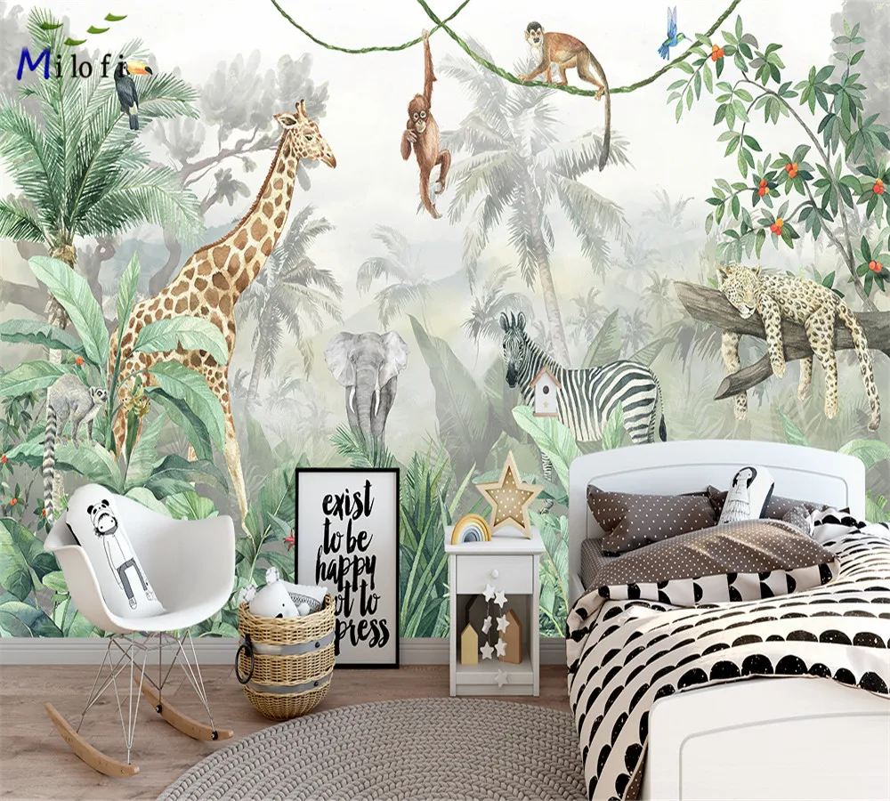 Milofi personnalisé aquarelle jungle pépinière 3d papier peint mural pour enfan...