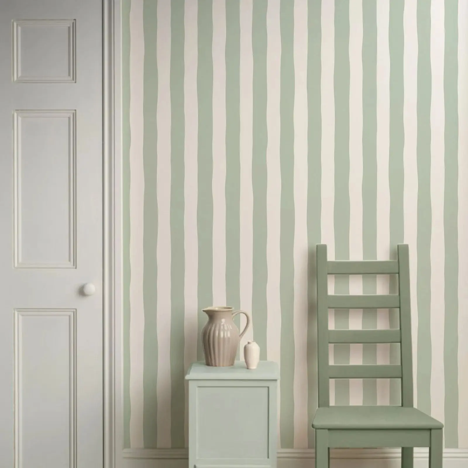 Papier peint amovible à rayures vertes sauge, papier peint &...