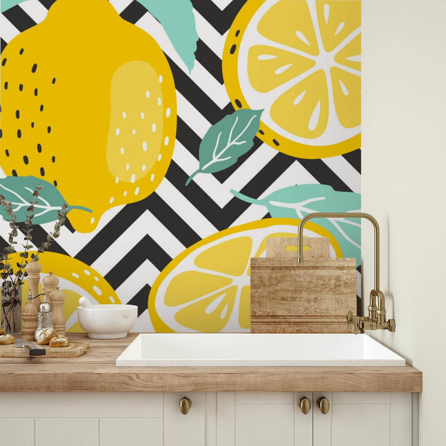 "Ce papier peint nature avec citron d'été apportera un look moderne à n'im...