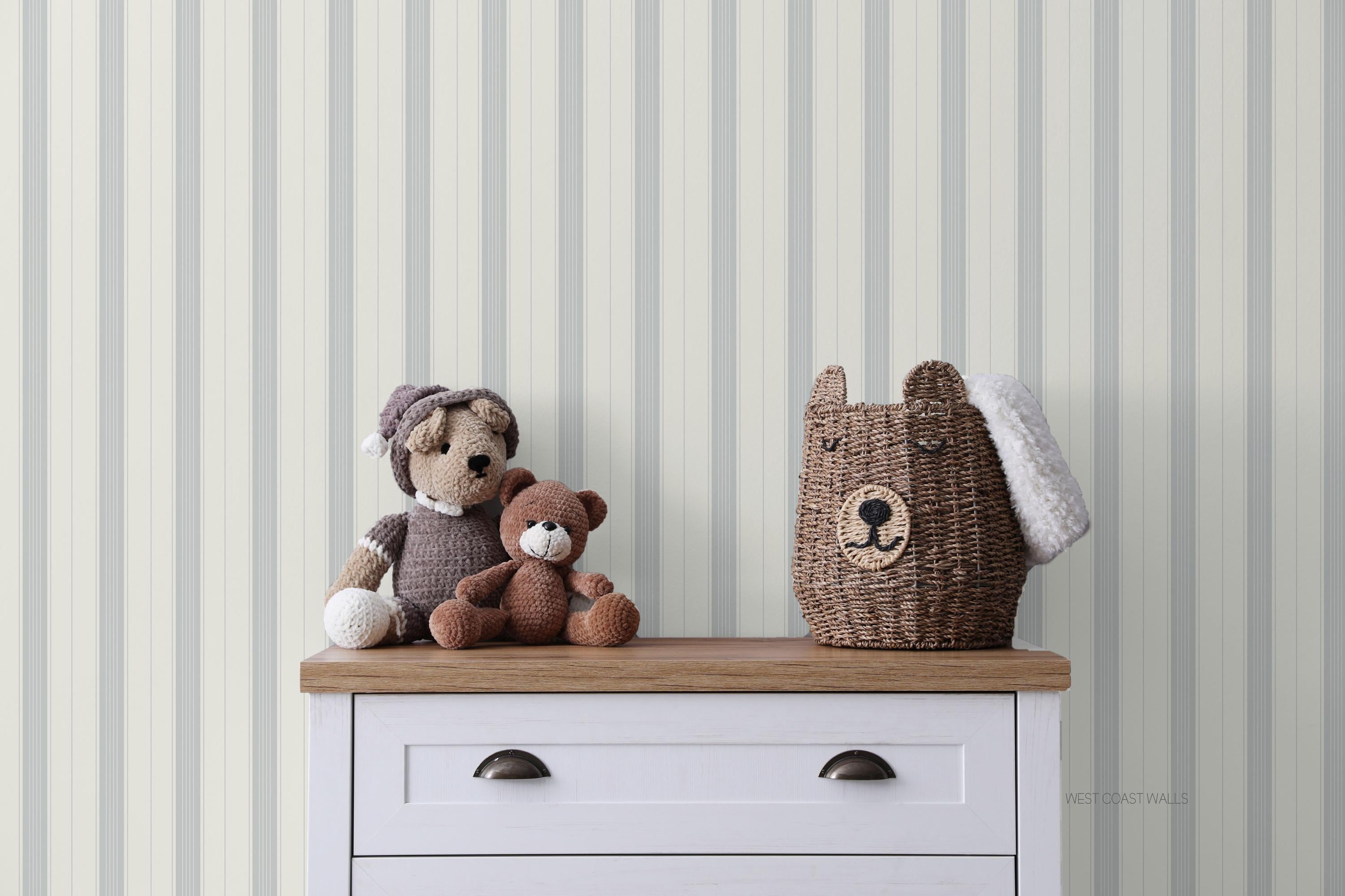 Papier peint à rayures vintage apaisant / papier peint coule...