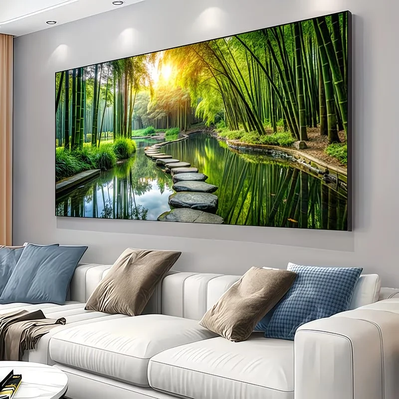 Kit de Peinture Diamant DIY Paysage Forêt de Bambou Ensoleill...