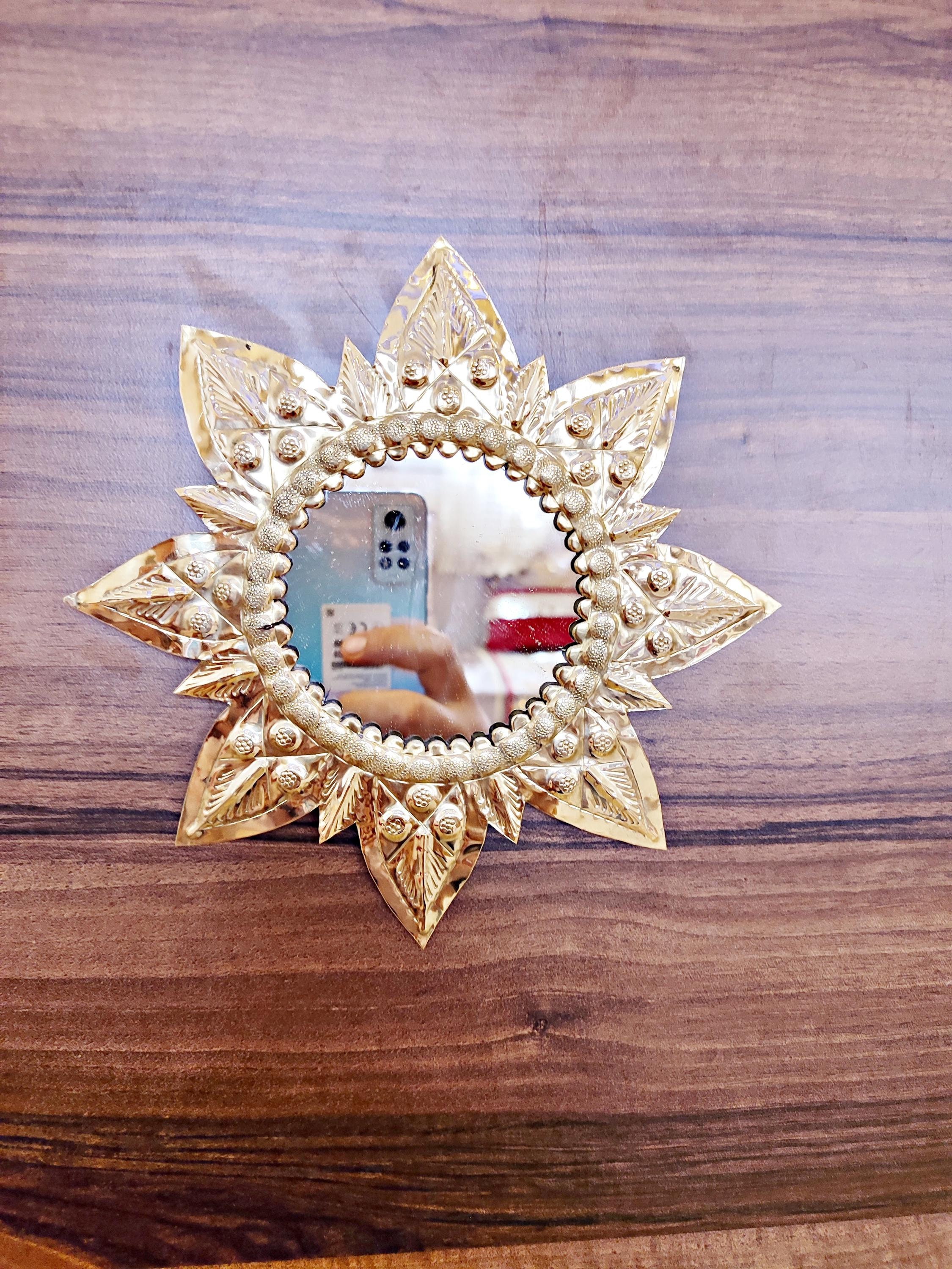 Small Wavy Brass Mirror, Flower Wall Mirror, Miroir for Bathroom, S...