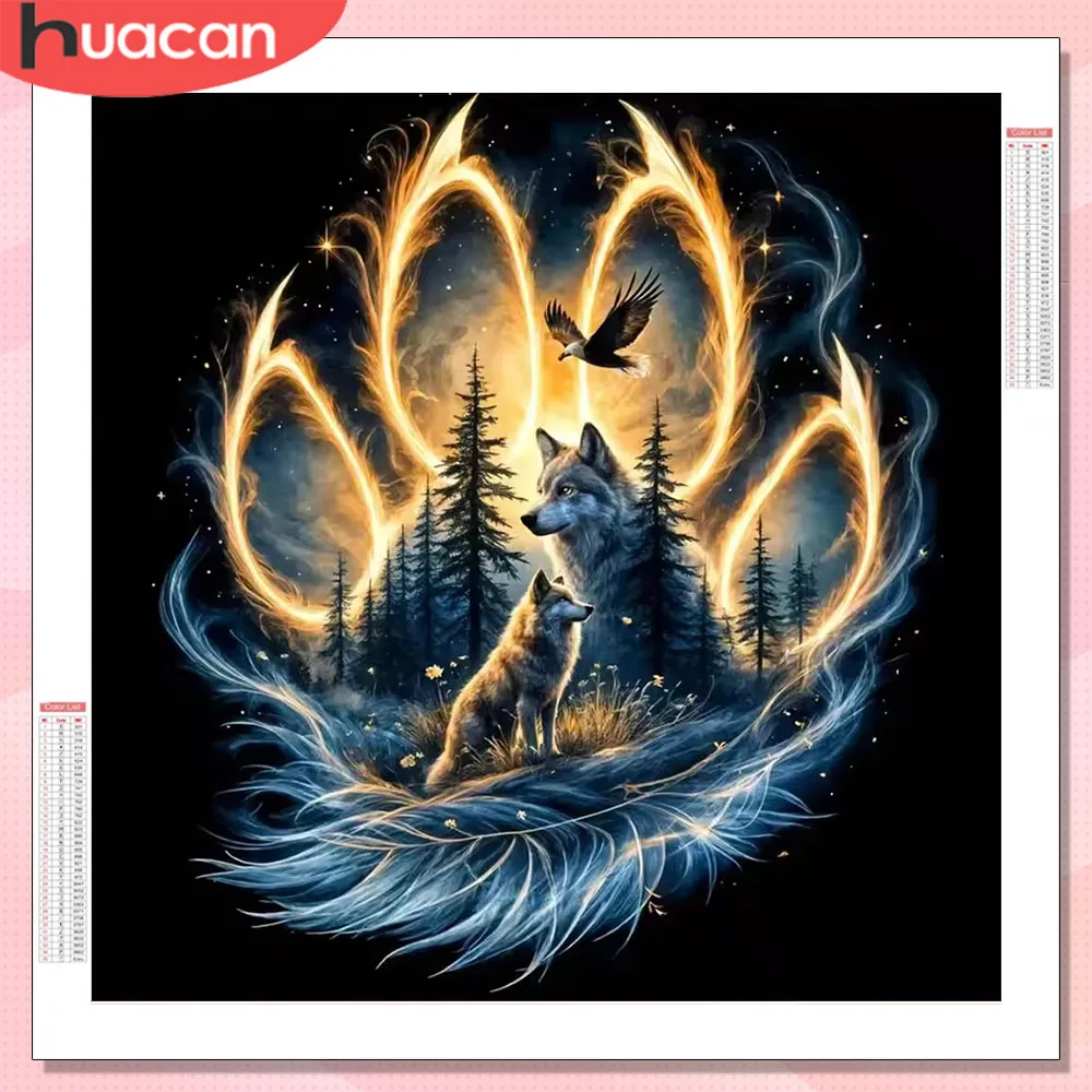 HUACAN diamant mosaïque Caw paysage loup animaux strass Kits plein carré rond diamant pe...