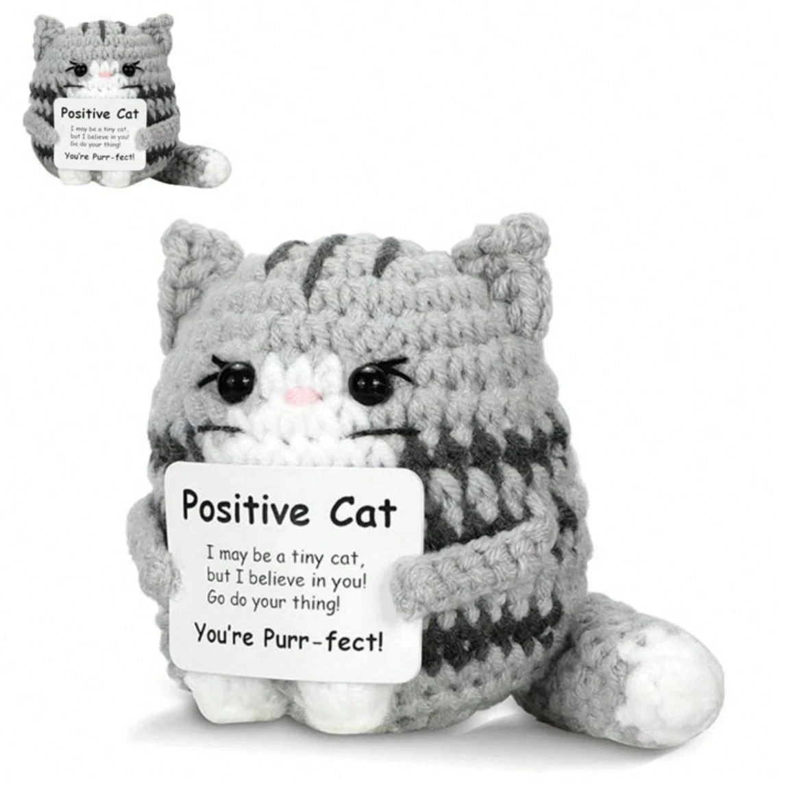 Mini animal de soutien émotionnel pour chat au crochet positif, mini chat fait à la ma...