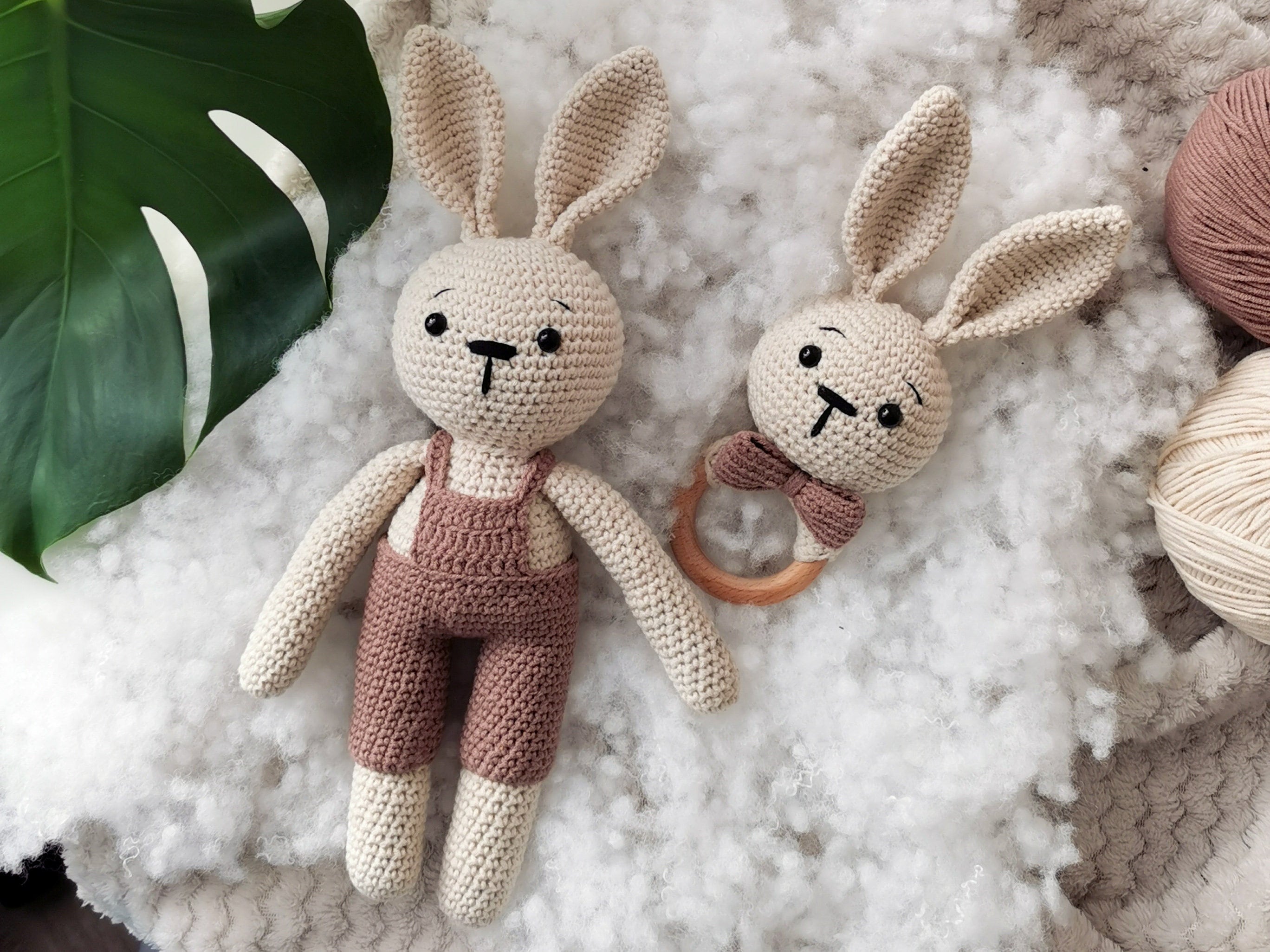 ️ Peluche lapin au crochet fait main, ensemble cadeau hochet pour bébé, cadeau ...