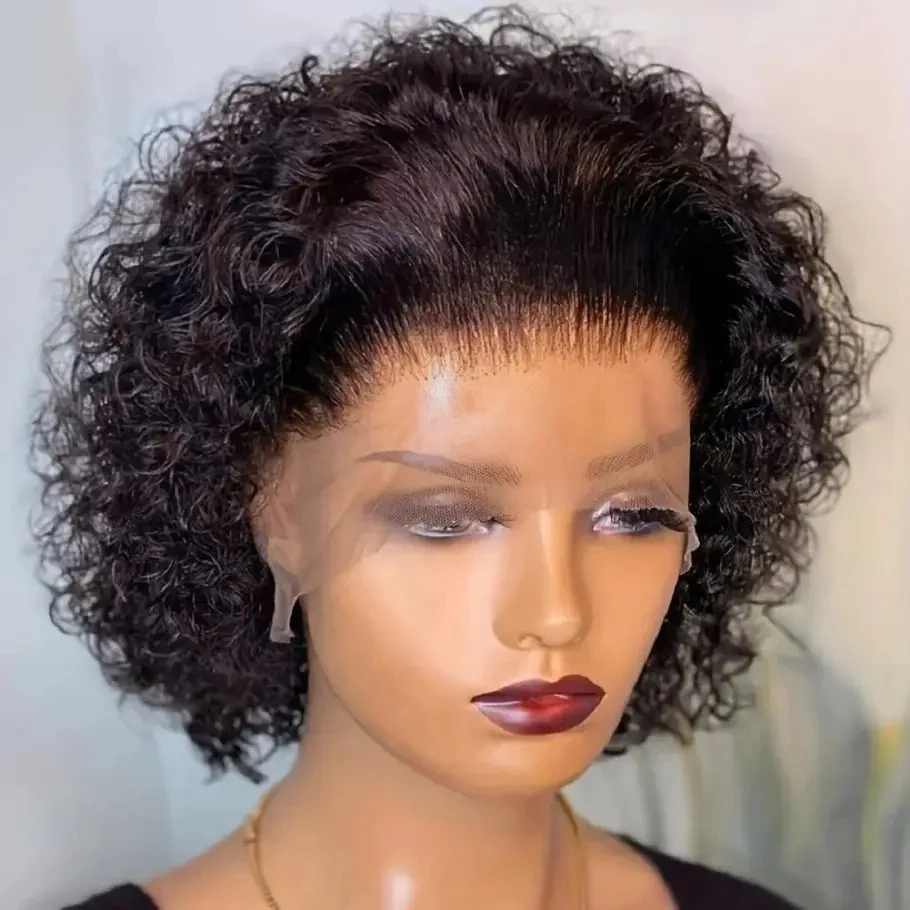 Perruque Coupe Pixie En Cheveux Naturels Courts Bouclés 13x1...