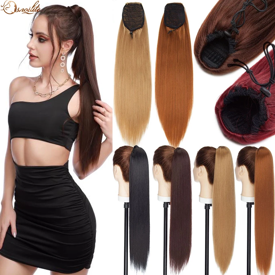 S-noilite synthétique 22 pouces Afro Yaki droite queue de cheval pince en queue de cheval Ext...