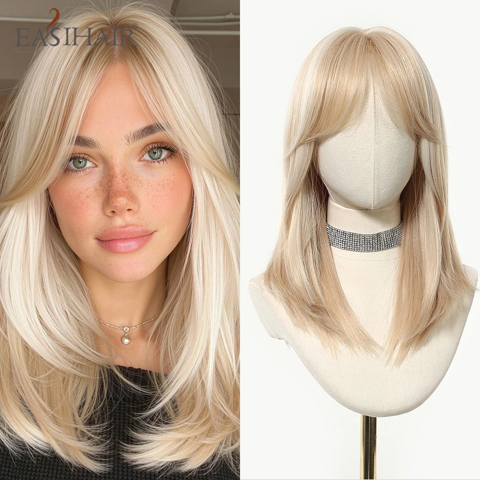 EASIHAIR – perruques synthétiques lisses blondes mi-longues pour femmes, cheveux blonds...