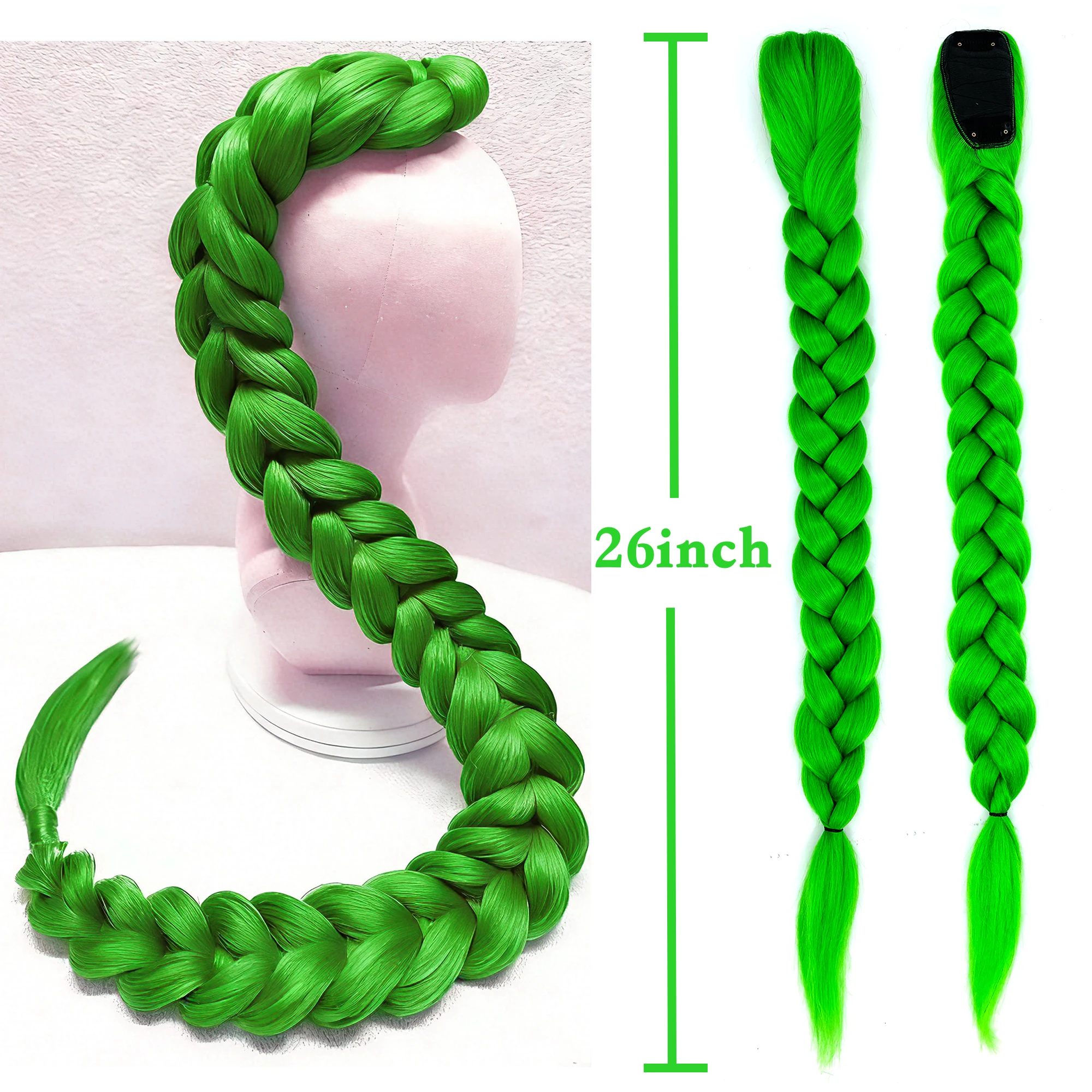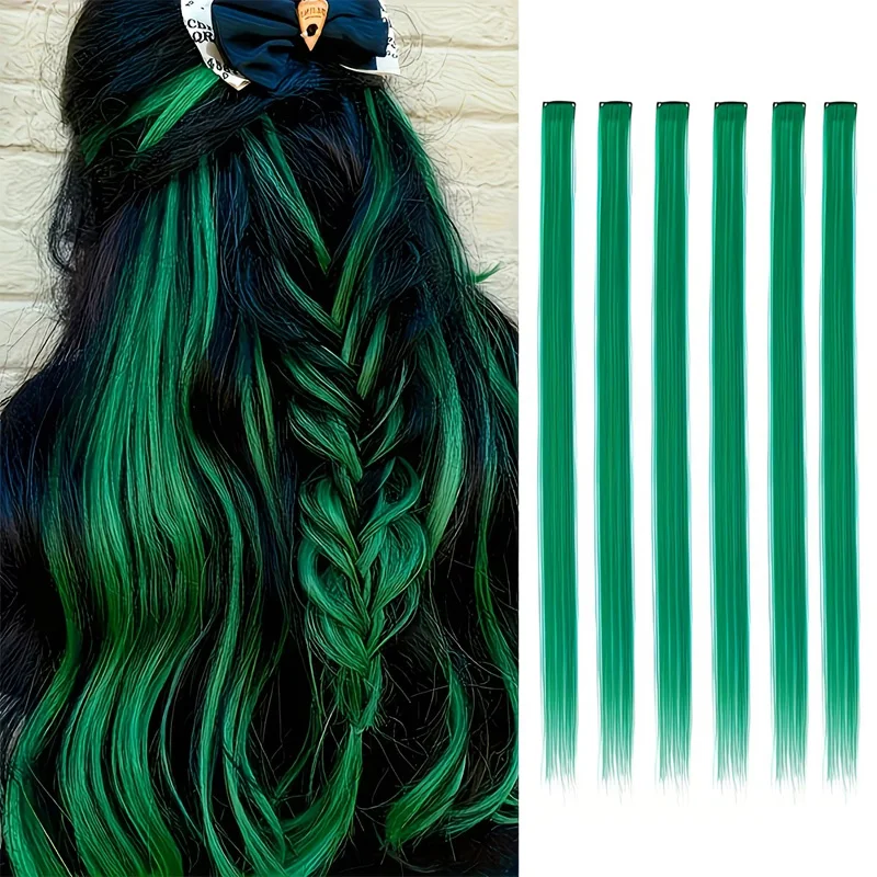 Perruque synthétique verte de 22 pouces résistante à la chaleur, avec pince &ag...