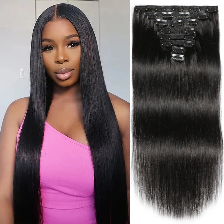 10-26 Inch Human Hair Clip in Extensions Brazilian Natural Seamless Straight Clip In Human Hair Exte...