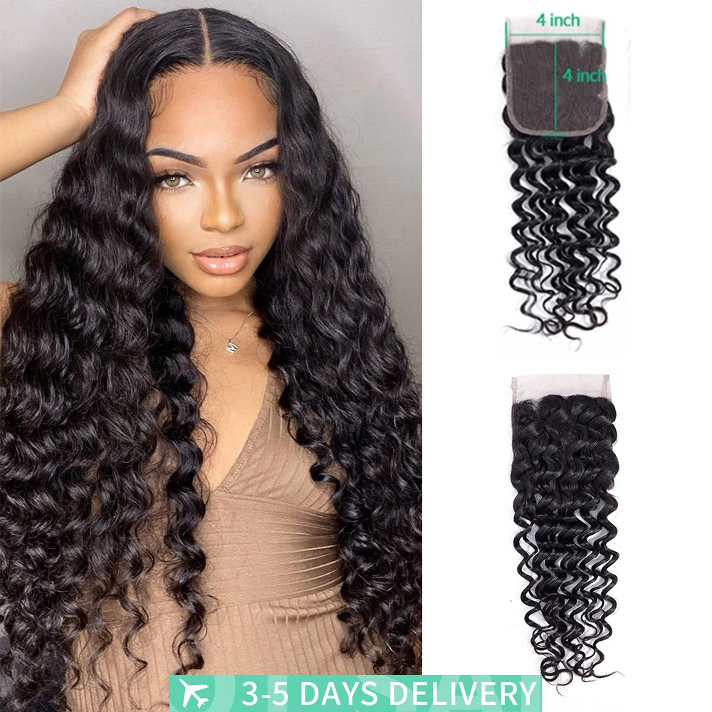 Deep Wave Closure Human Hair 4x4 Closure Cheveux Humain Frontale Ch...
