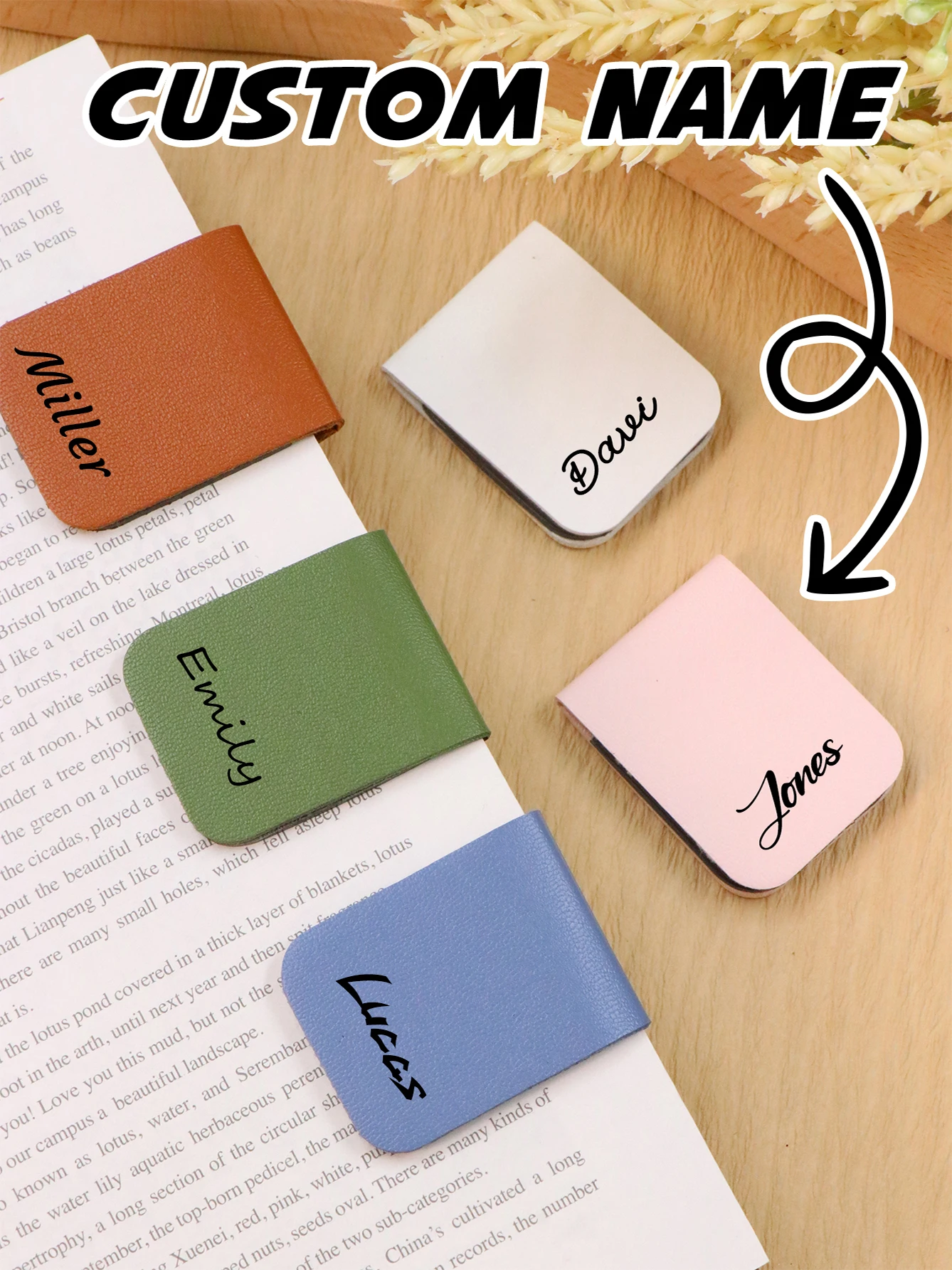 Marque-pages magnétiques avec nom personnalisé, marque-pages en cuir avec nom personna...