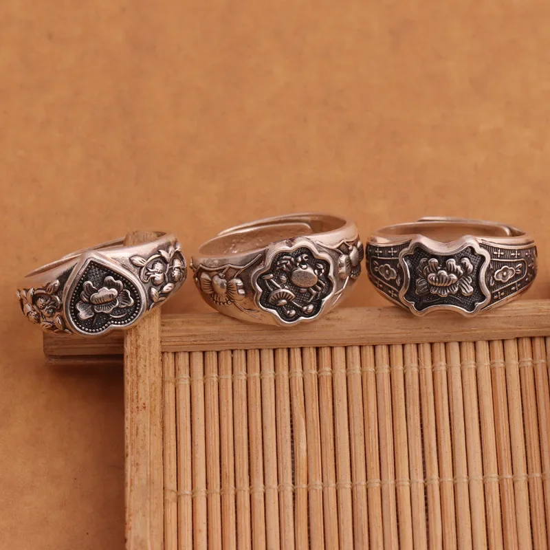 Bague rétro pivoine huit Directions richesse ouverture réglable Couple unisexe bijoux ...