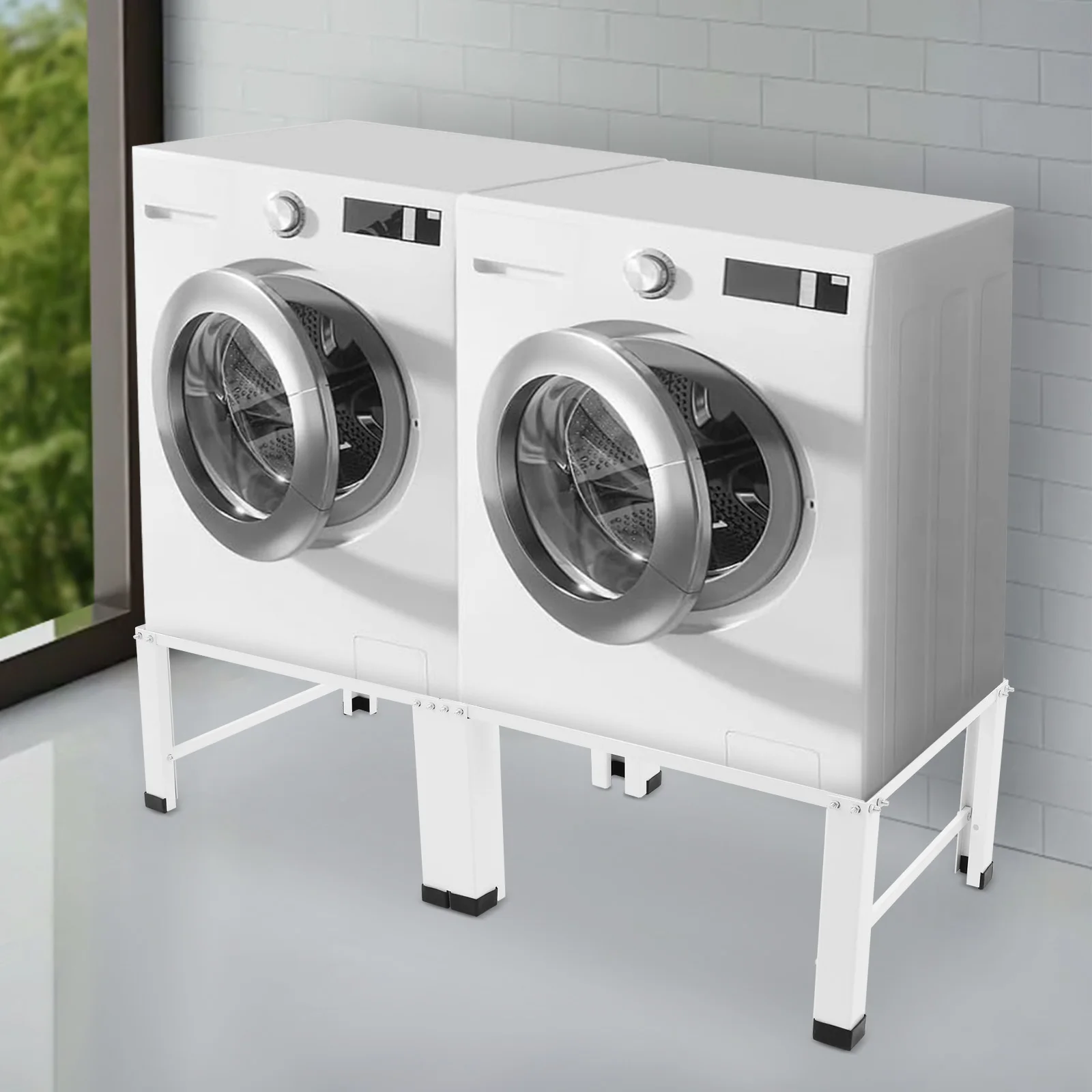 Support double pour lave-linge, cadre en acier avec patins anti-vib...
