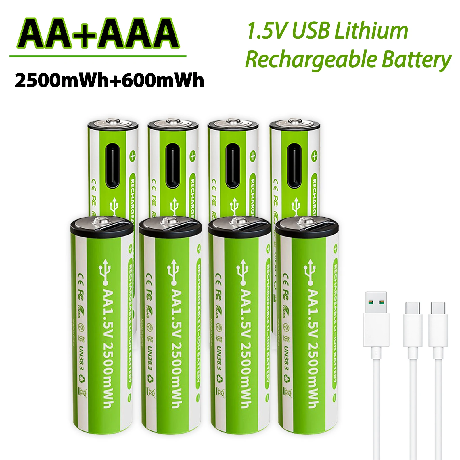 2-20PK Piles lithium-ion USB durables AA+AAA 2500mWh & 600mWh haute capacité, rechargeabl...