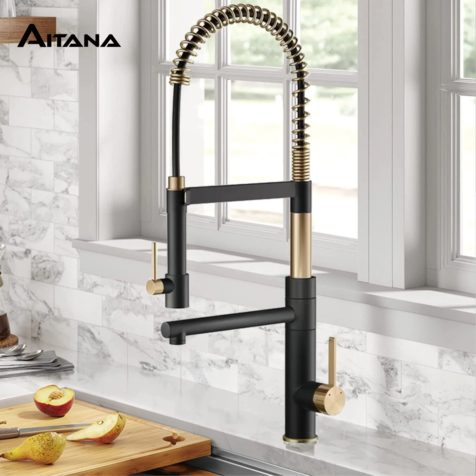 AITANA-Plan de cuisine en laiton de luxe gris odor, poignée unique, froid et chaud, double co...