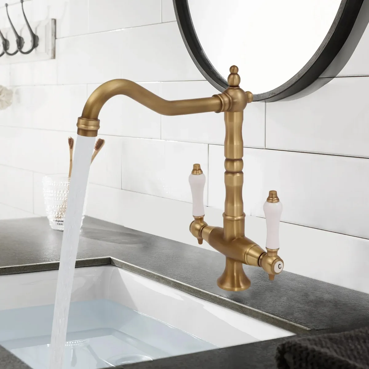Robinet de lavabo en laiton à deux poignées, mitigeur chaud/froid, à poser sur ...