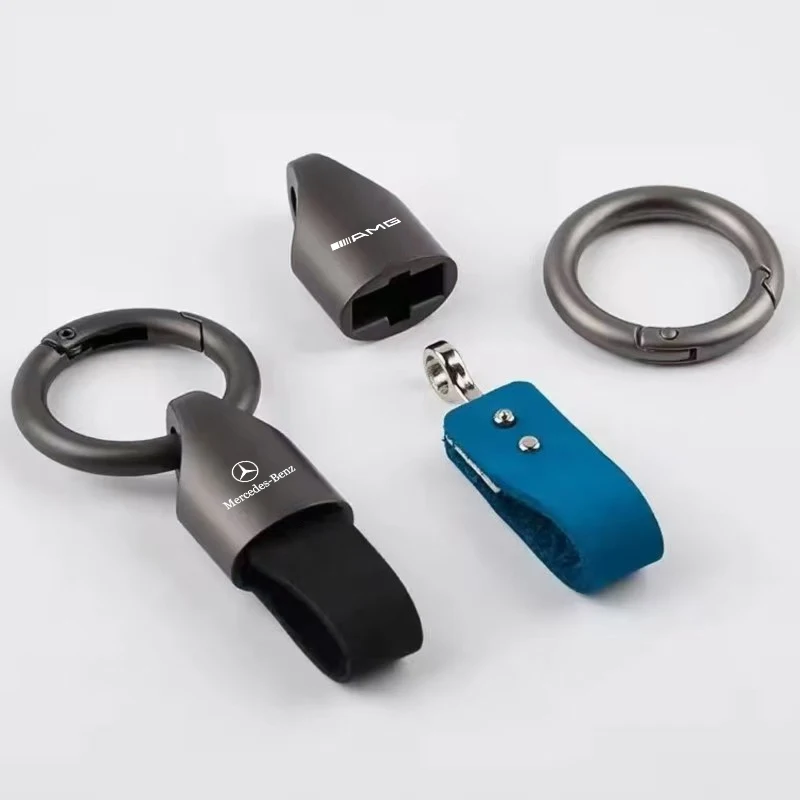 Porte-clés en métal et cuir 3D avec logo de voiture pour Mercedes Benz AMG W204 W205 W...