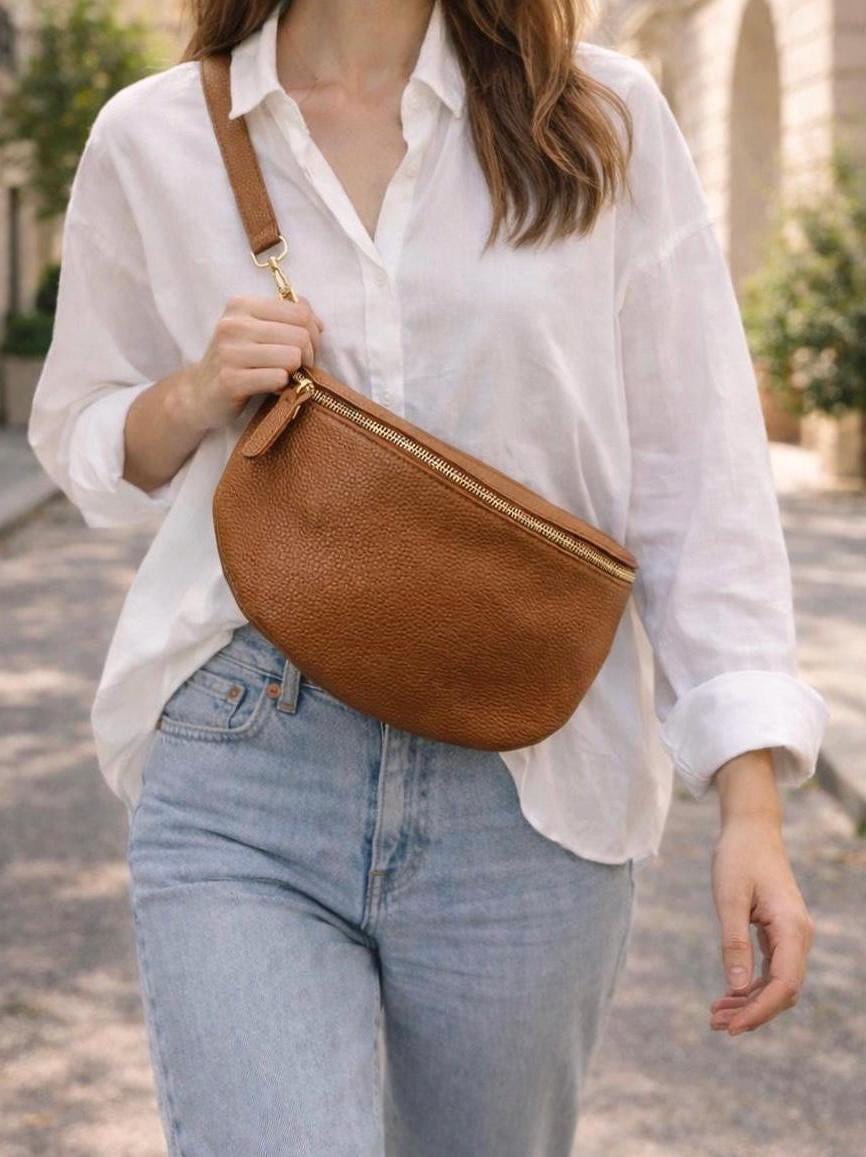 Grand sac banane en cuir grainé 30x20 cm - Sac bandouli&egra...