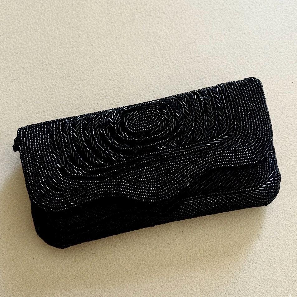 Pochette noire Party. Magnifiquement perlé et soigneusement conçu, ce sac polyvalent p...