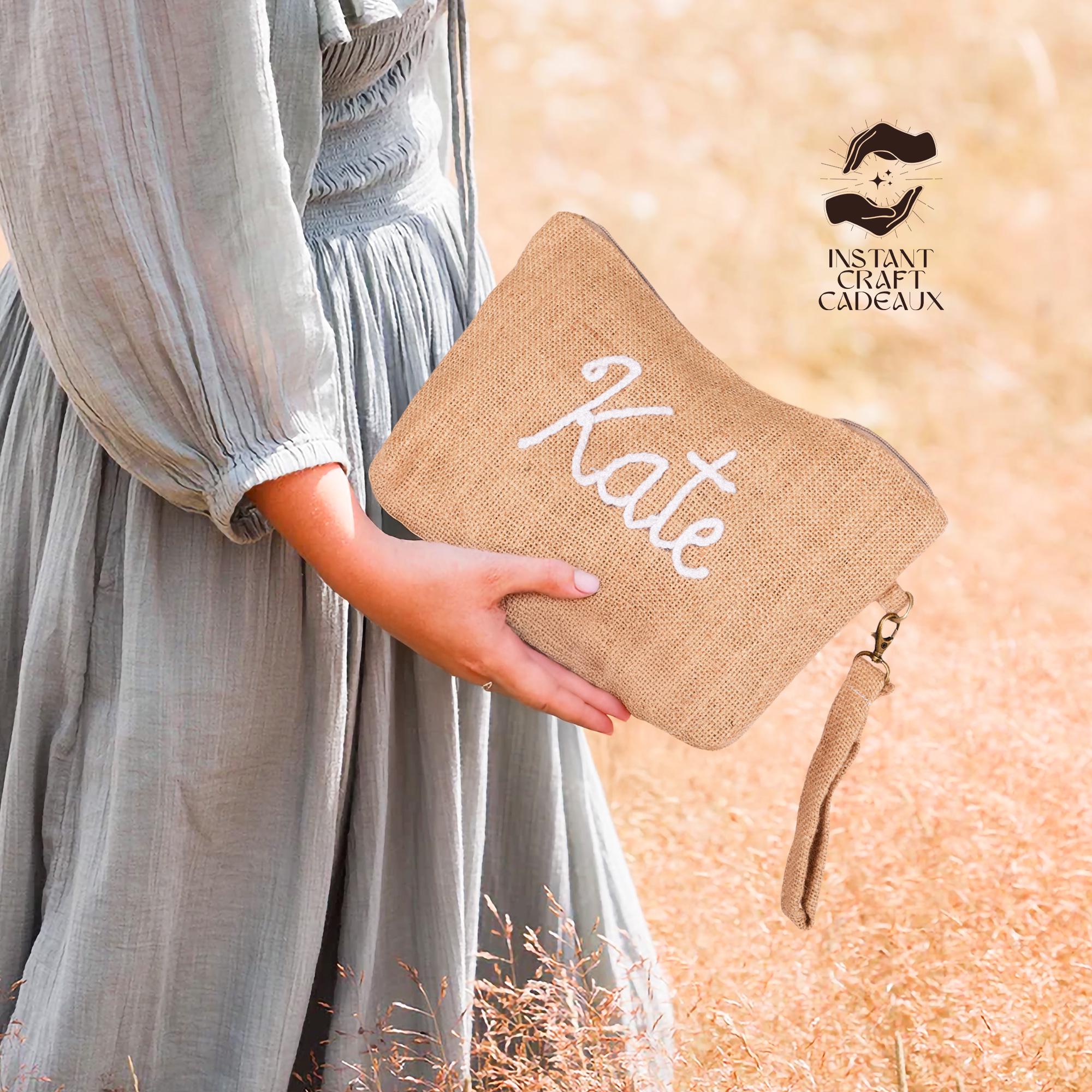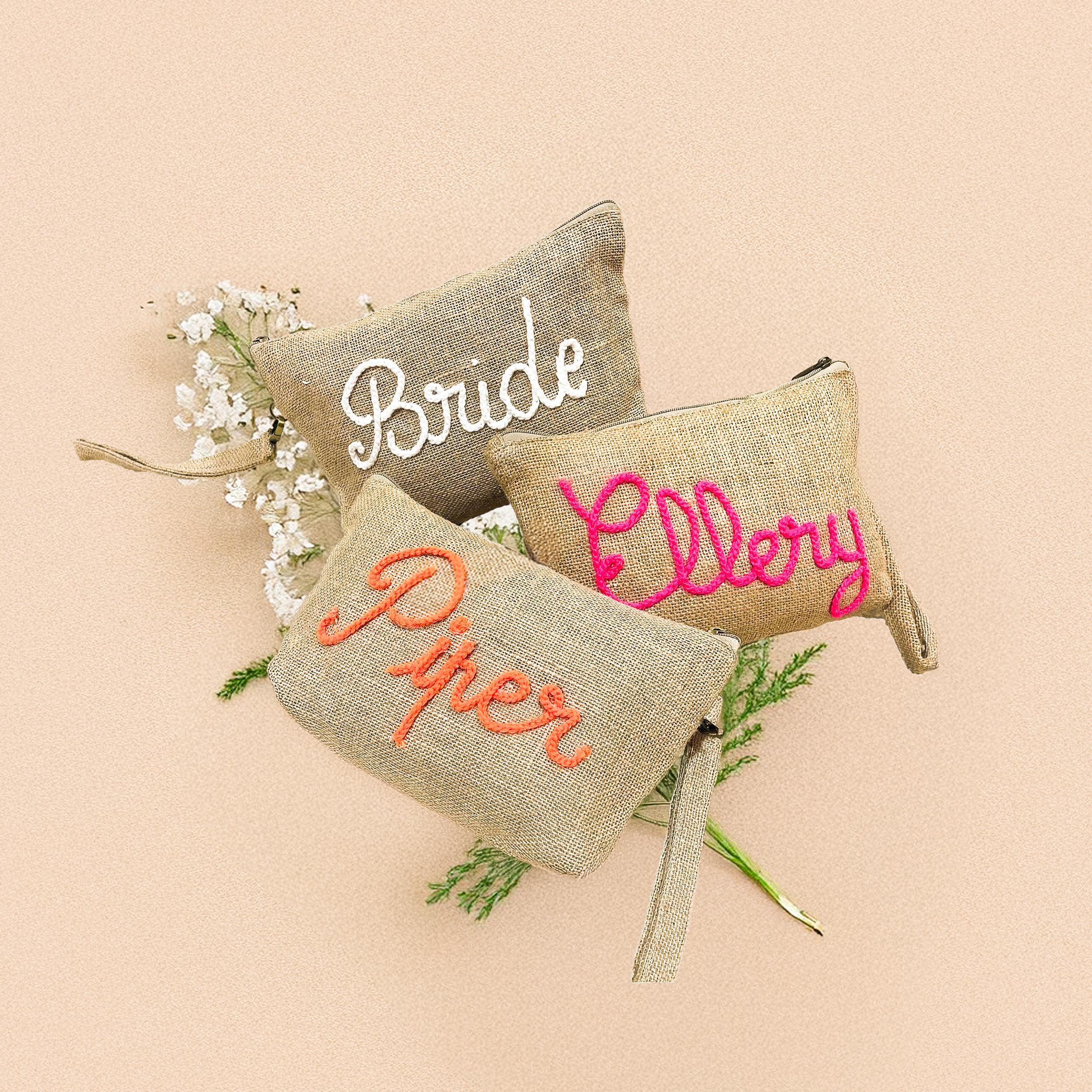 Gift for bride, Custom jute bags, Personalised Cosmetic bag, Embroi...