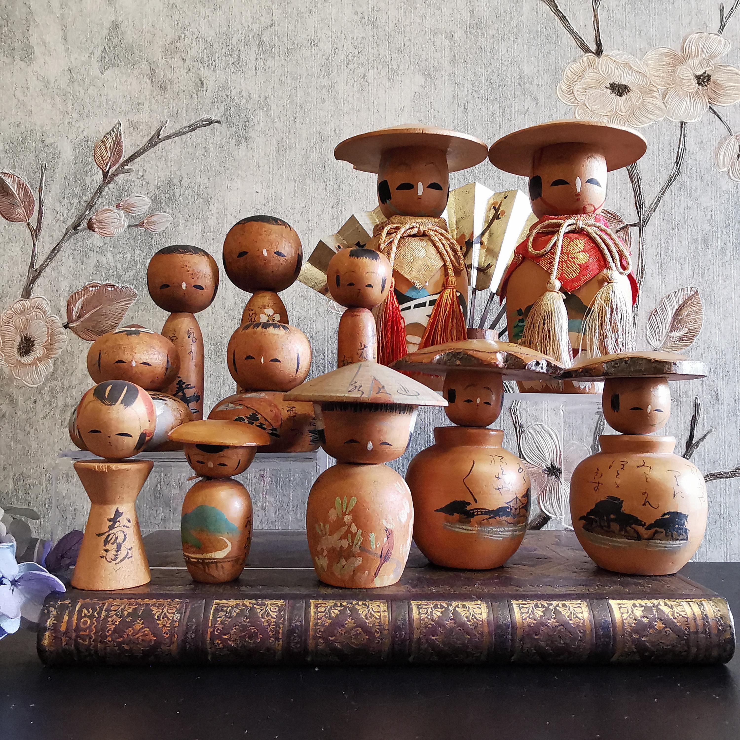 Ensemble de 13 poupées Kokeshi souvenirs créatives omiyage faites à la main. Ce...