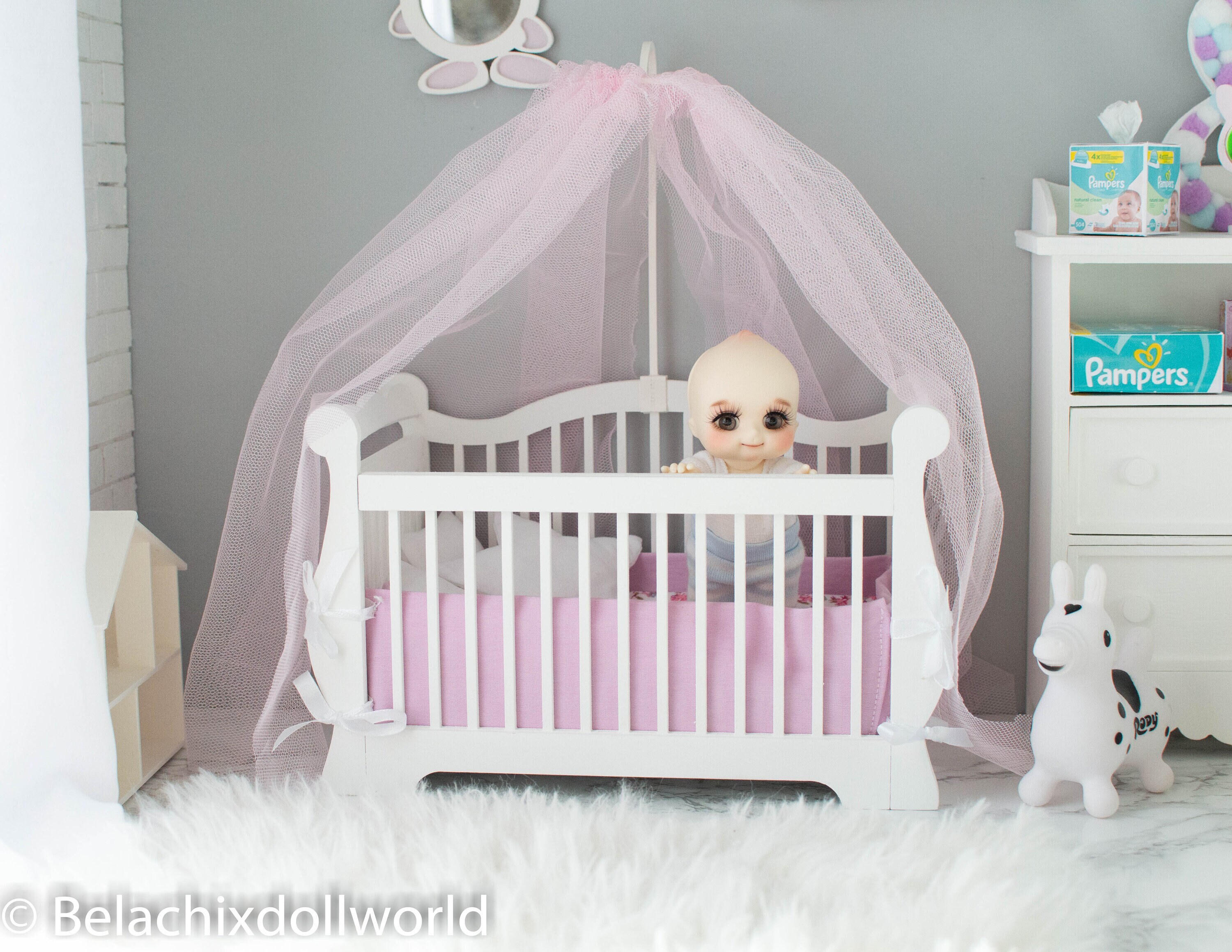 Lit de bébé lune miniature 1:4, chambre de béb...