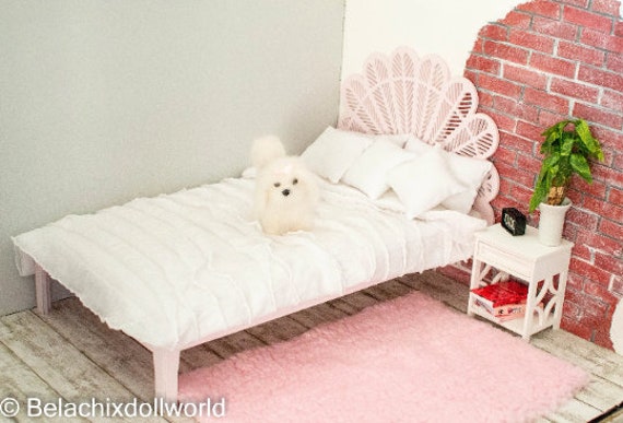 1/6 Lit de paon de maison de poupée, lit miniature, 1:6, BJD...