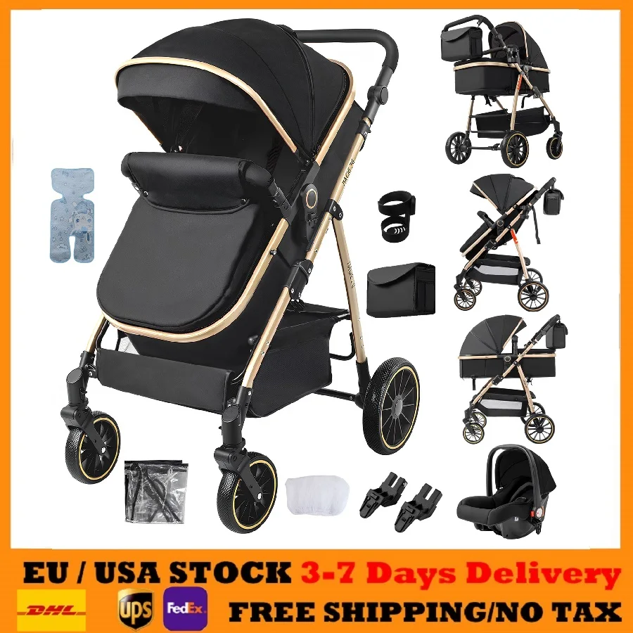 3 en 1 bébé poussette compacte bébé poussette 3 pièces pour nouve...