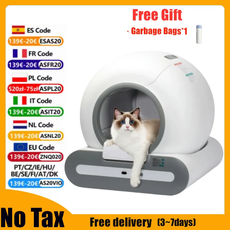 Litière pour chat autonettoyante à toit ouvert 65L 2026, grande litière automat...