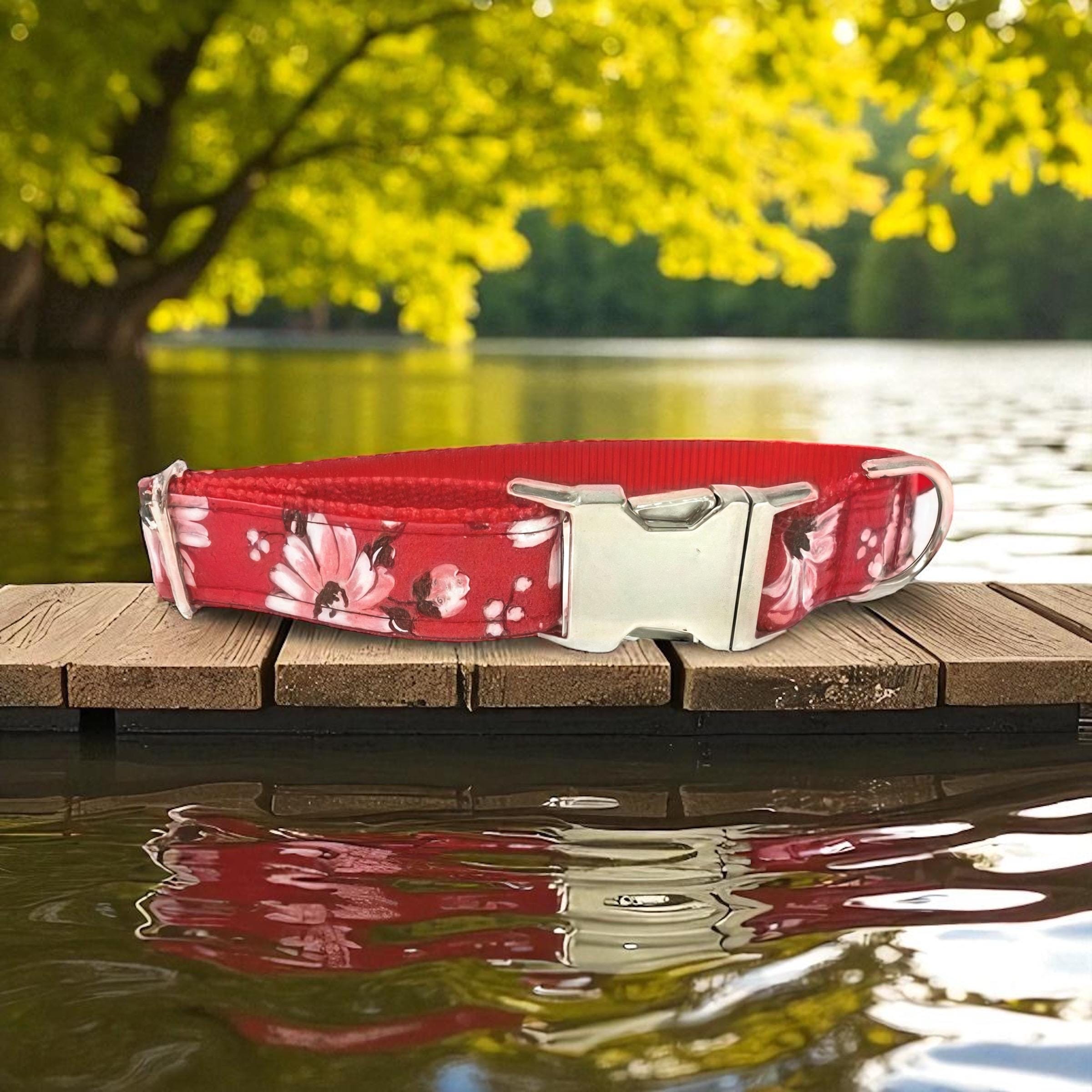 "Ce joli collier pour chien de marque pour fille à imprimé floral rouge, rose, bl...